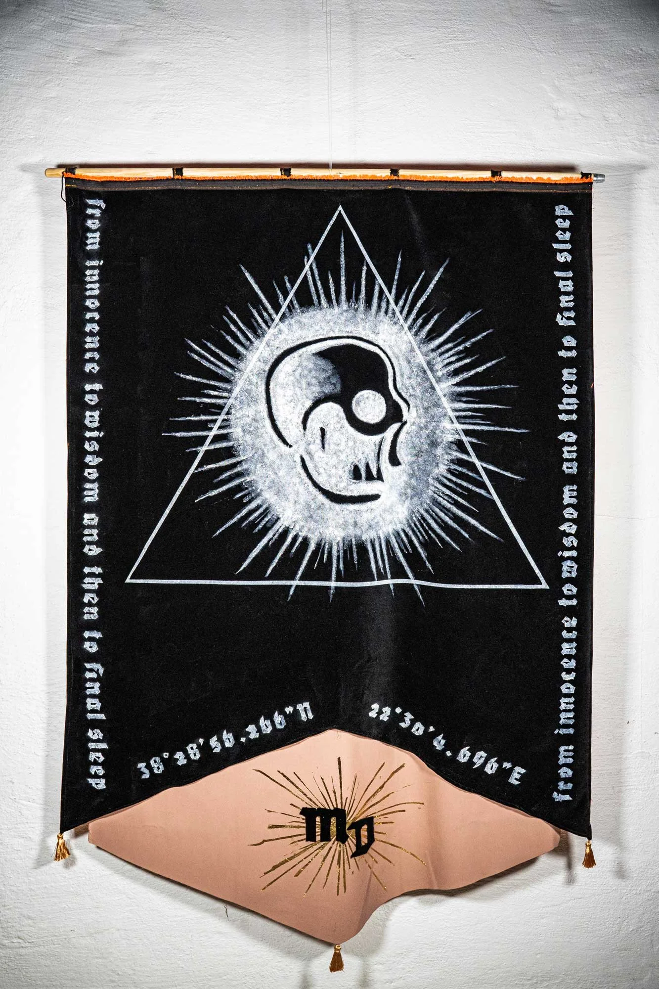 Processional banner of the oracle. Whoever follows it will find themselves in old familiar strangeness. A Fremdheitserfahrung of the collective subconscious. The decision of what we carry into the future.